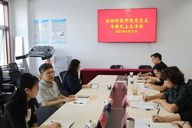 按照学院党委统一安排,2023年8月31日下午,安防科技学院党总支班子召开学习贯彻习近平新时代中国特色社会主义思想主题教育专题民主生活会。学院党委副书记、院长许传玺同志出席会议并作点评指导,学院纪检监察办公室主任童桂花、组织部韩林轩列席会议。会议由安防科技学院党总支书记朱明同志主持。