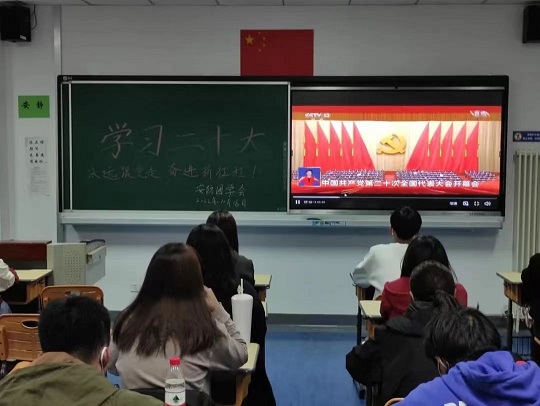 在二十大召开之前,安防科技学院党总支发出专题通知,组织广大师生收看二十大实况,第一时间学习领会二十大精神。2022年10月17日晚,安防科技学院团总支组织全体同学在各教室再次收看二十大实况,学习二十大报告内容,组织学习交流。任靖、缐爱欣、夏芳怡等同学结合自己的学习发展谈了学习体会。下一步,安防科技学院将在广大青年学生中开展“二十岁遇上二十大”学习“二十大”精神系列活动。同学们通过讲述学习体会,自身故事,展示抱负理想以及对未来的憧憬和希望,展现政法学子的青春风采、拼搏奋斗和创新活力。